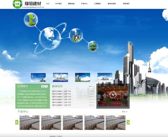 網頁設計要求:大氣美觀,體現公司在建材行業的實力,以公司logo綠色為主色調進行設計,首頁主要展示公司新聞,公司簡介版塊,視頻版塊和主打產品(循環滾動形式)