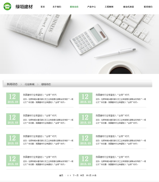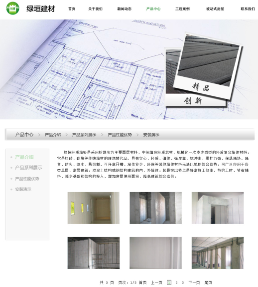 綠垣建材網站欄目設置: 首頁 關于我們 新聞動態 產品中心 案例展示 集成化房屋 聯系我們